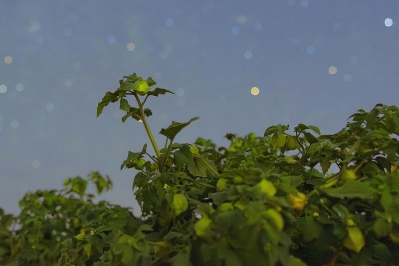 7月23日在黑龍江省雙鴨山市集賢縣拍攝的星空下的菇娘。