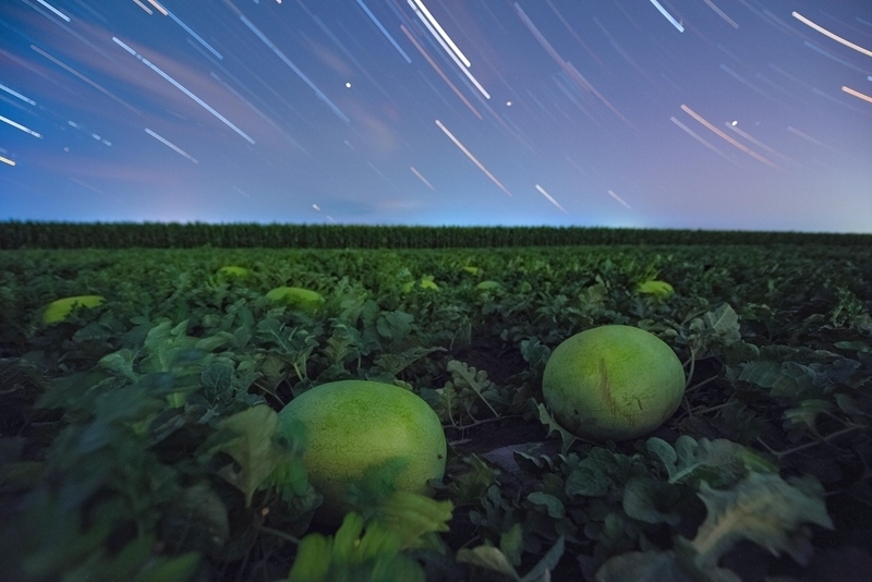 7月23日在黑龍江省佳木斯市富錦市上街基鎮(zhèn)拍攝的西瓜與北斗七星相映成趣。