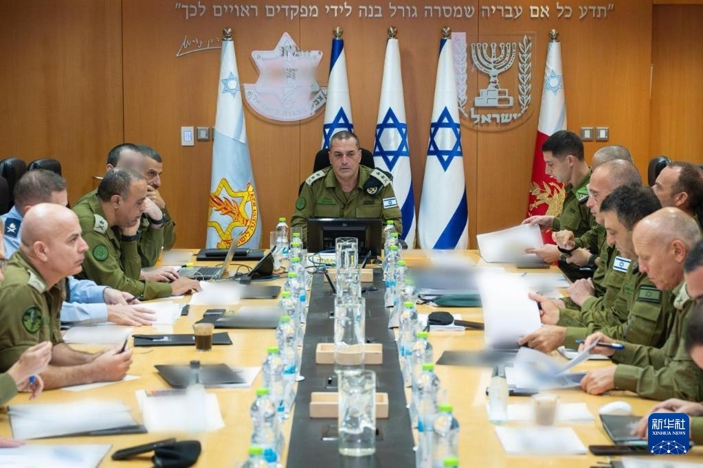 這張8月13日發(fā)布的未注明拍攝地點(diǎn)的照片顯示,以軍總參謀長(zhǎng)扎米爾(中)當(dāng)天舉行會(huì)議。新華社發(fā)(以色列國(guó)防軍供圖)