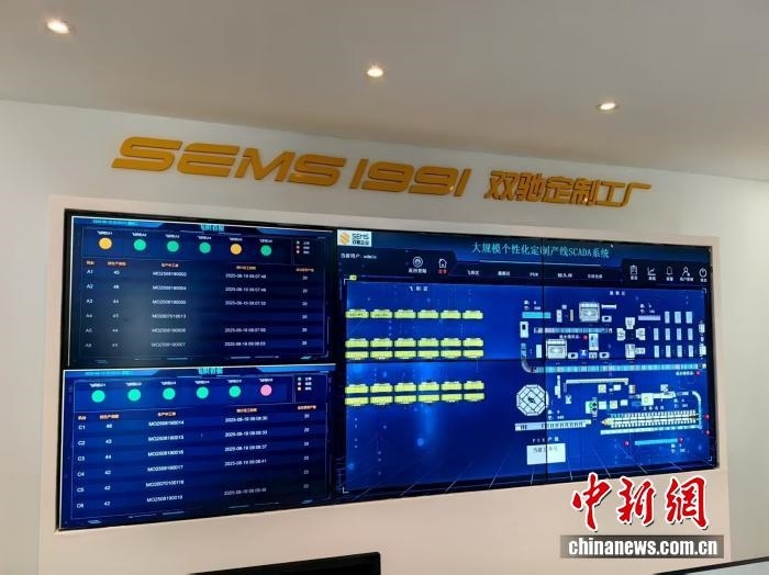 雙馳定制工廠大規(guī)模個(gè)性化定制產(chǎn)線SCADA系統(tǒng)。中新網(wǎng)記者 閆旭 攝
