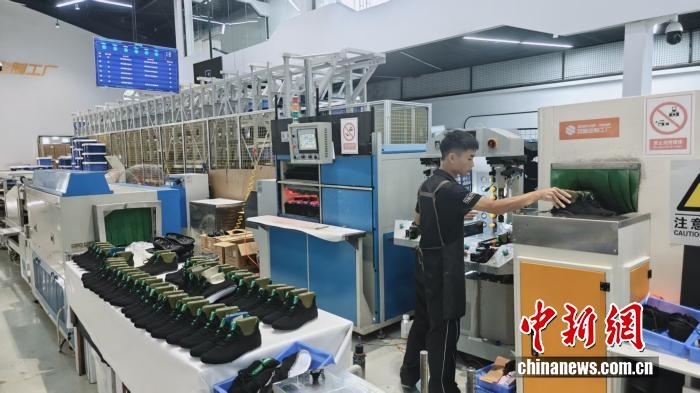 記者現(xiàn)場(chǎng)體驗(yàn)“雙馳鞋業(yè)大規(guī)模個(gè)性化定制”。中新網(wǎng)記者 閆旭 攝