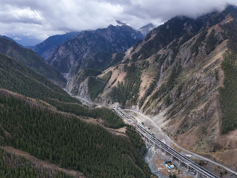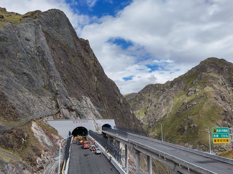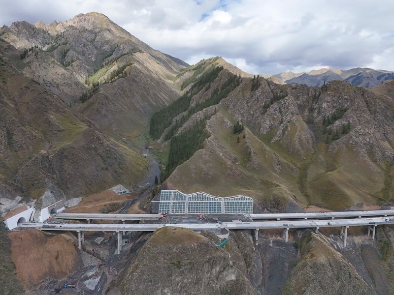 工人在新疆烏尉高速公路躍進(jìn)3號隧道南端施工(8月19日攝,無人機照片)。