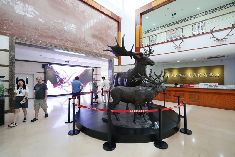 8月24日,游客在北京南海子麋鹿苑博物館參觀(guān)。