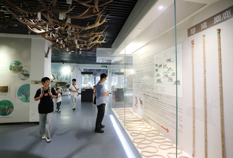 8月24日,游客在北京南海子麋鹿苑博物館參觀(guān)了解麋鹿相關(guān)知識(shí)。