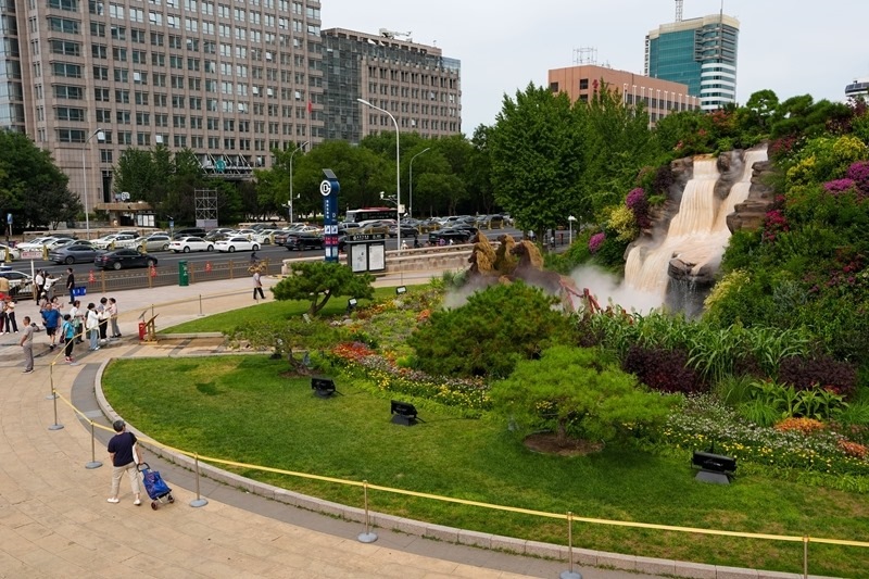 8月26日,人們?cè)诒本?fù)興門參觀“美好明天”花壇。