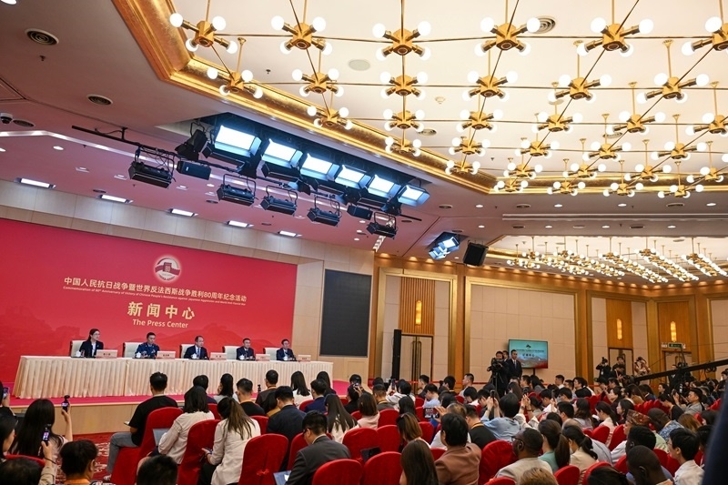 8月28日上午,中國人民抗日戰(zhàn)爭暨世界反法西斯戰(zhàn)爭勝利80周年紀(jì)念活動新聞中心舉辦第一場記者招待會,外交部部長助理洪磊,文化和旅游部副部長盧映川,閱兵領(lǐng)導(dǎo)小組辦公室副主任、中央軍委聯(lián)合參謀部作戰(zhàn)局少將副局長吳澤棵,北京市委常委、常務(wù)副市長夏林茂介紹紀(jì)念活動有關(guān)籌備進展,并回答記者提問。