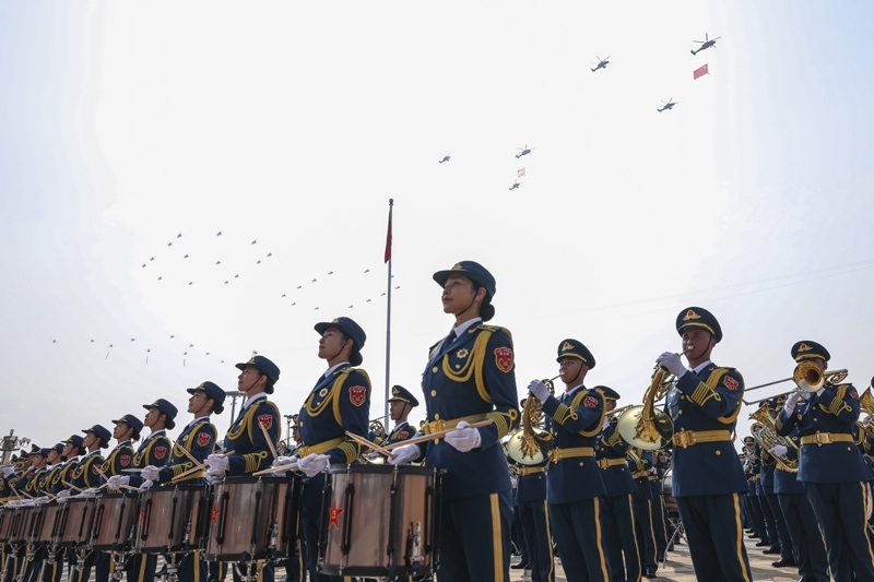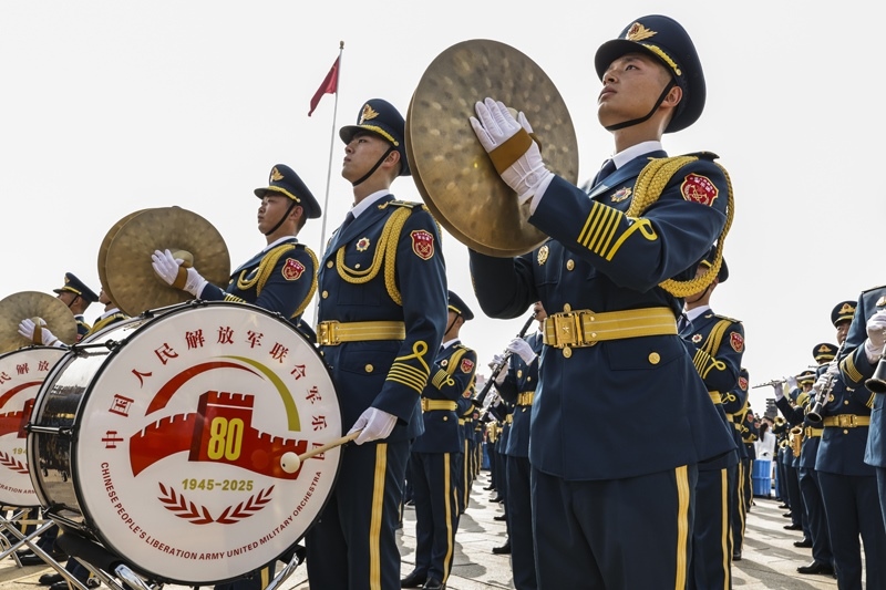 9月3日,紀(jì)念中國(guó)人民抗日戰(zhàn)爭(zhēng)暨世界反法西斯戰(zhàn)爭(zhēng)勝利80周年大會(huì)在北京隆重舉行。這是中國(guó)人民解放軍聯(lián)合軍樂(lè)團(tuán)在演奏。