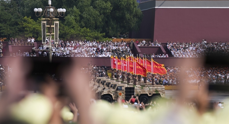 9月3日,紀(jì)念中國(guó)人民抗日戰(zhàn)爭(zhēng)暨世界反法西斯戰(zhàn)爭(zhēng)勝利80周年大會(huì)在北京隆重舉行。這是戰(zhàn)旗方隊(duì)通過(guò)天安門(mén)廣場(chǎng)。