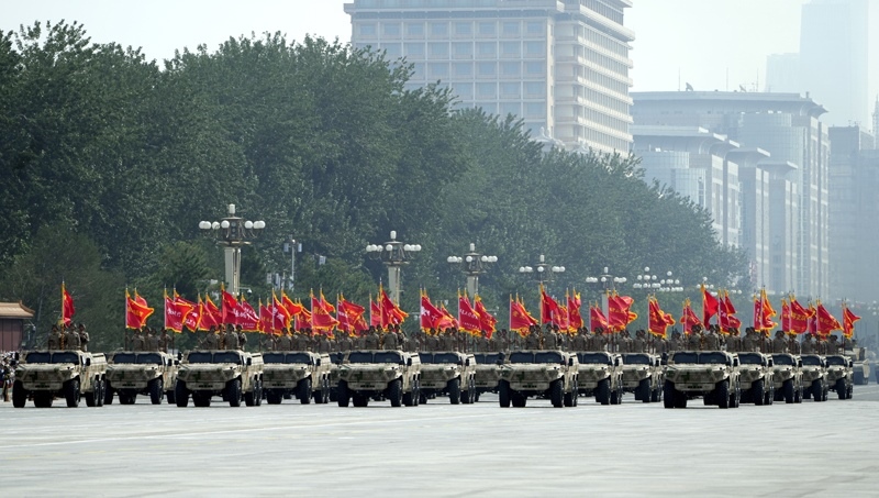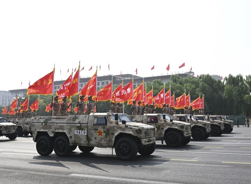 9月3日,紀(jì)念中國人民抗日戰(zhàn)爭暨世界反法西斯戰(zhàn)爭勝利80周年大會在北京隆重舉行。這是信息支援部隊方隊接受檢閱。