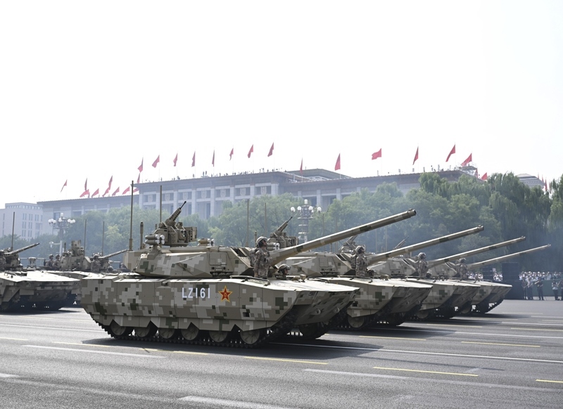 9月3日,紀(jì)念中國人民抗日戰(zhàn)爭暨世界反法西斯戰(zhàn)爭勝利80周年大會在北京隆重舉行。這是火箭軍方隊接受檢閱。