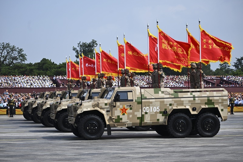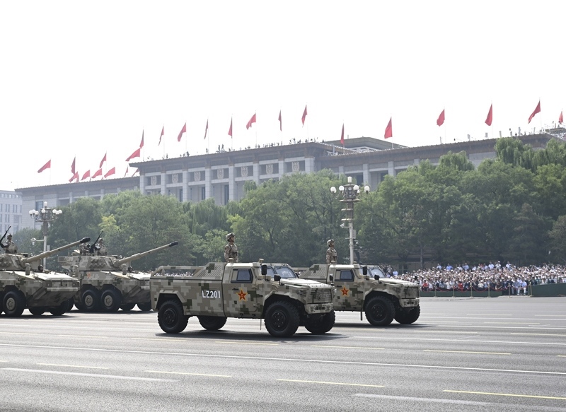 9月3日,紀(jì)念中國人民抗日戰(zhàn)爭暨世界反法西斯戰(zhàn)爭勝利80周年大會(huì)在北京隆重舉行。這是裝備保障方隊(duì)接受檢閱。
