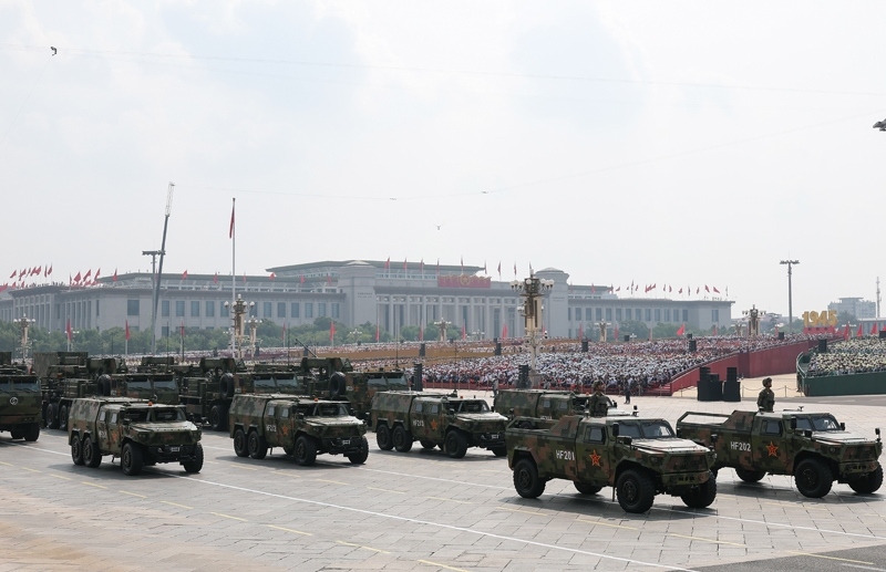 9月3日,紀(jì)念中國人民抗日戰(zhàn)爭暨世界反法西斯戰(zhàn)爭勝利80周年大會(huì)在北京隆重舉行。這是信息支援方隊(duì)通過天安門廣場。