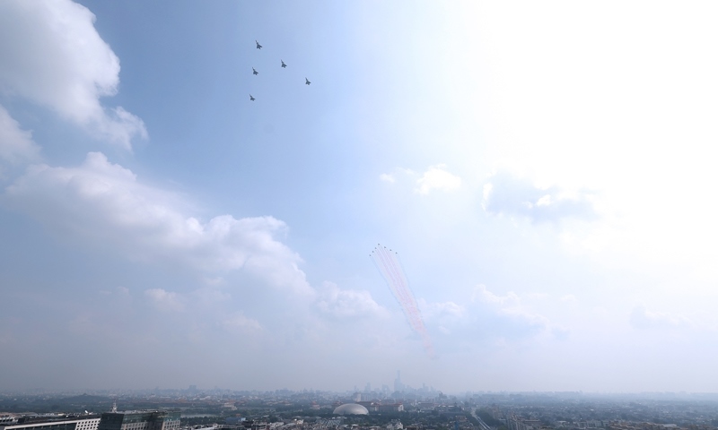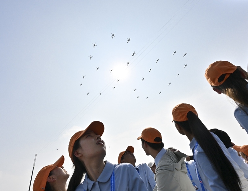 9月3日,紀(jì)念中國人民抗日戰(zhàn)爭暨世界反法西斯戰(zhàn)爭勝利80周年大會(huì)在北京隆重舉行。這是空中梯隊(duì)接受檢閱。