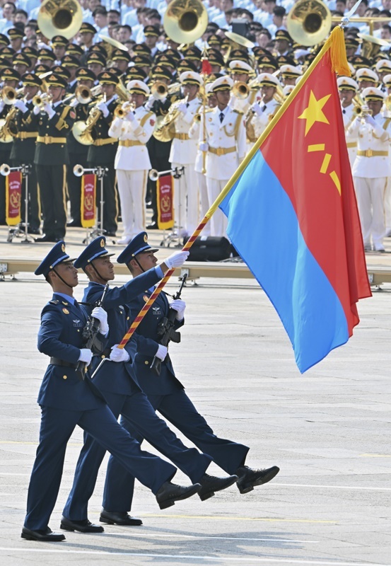 9月3日,紀(jì)念中國人民抗日戰(zhàn)爭暨世界反法西斯戰(zhàn)爭勝利80周年大會(huì)在北京隆重舉行。這是空軍方隊(duì)接受檢閱。