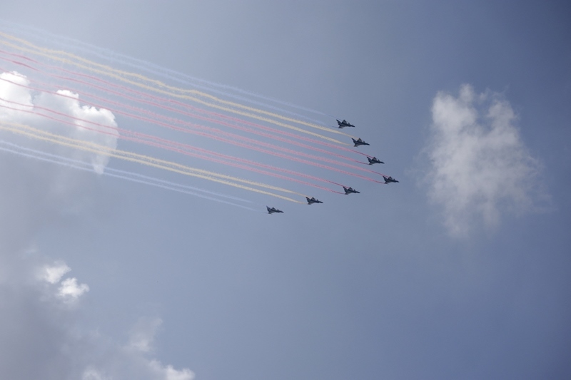 9月3日,紀(jì)念中國人民抗日戰(zhàn)爭暨世界反法西斯戰(zhàn)爭勝利80周年大會(huì)在北京隆重舉行。這是教練機(jī)梯隊(duì)接受檢閱。