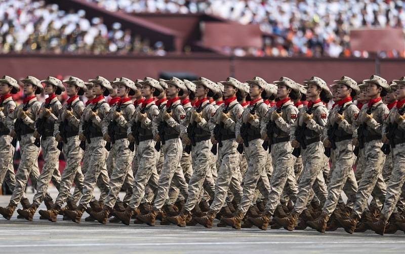 9月3日,紀(jì)念中國(guó)人民抗日戰(zhàn)爭(zhēng)暨世界反法西斯戰(zhàn)爭(zhēng)勝利80周年大會(huì)在北京隆重舉行。這是徒步方隊(duì)接受檢閱。