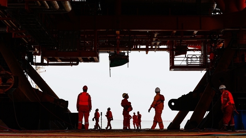 9月8日,工人穿梭在墾利6-1油田10-1北區(qū)塊Ⅱ期開發(fā)項目油氣平臺安裝作業(yè)現(xiàn)場。