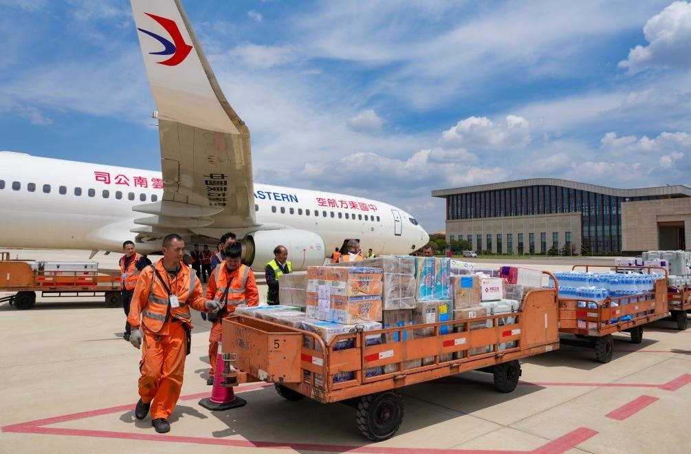 這是2025年4月19日在昆明長水機(jī)場拍攝的中國政府援緬衛(wèi)生防疫隊攜帶的物資。新華社記者 陳欣波 攝