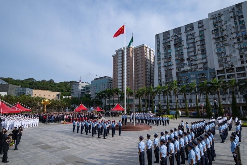 10月1日,澳門(mén)特別行政區(qū)政府在金蓮花廣場(chǎng)隆重舉行升旗儀式,慶祝中華人民共和國(guó)成立76周年。