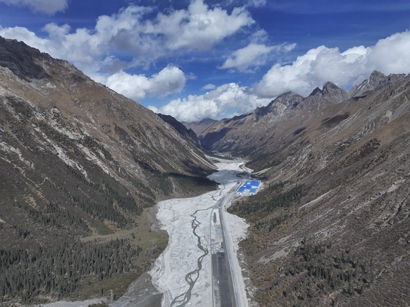 這是10月5日在新疆昭蘇縣拍攝的昭溫公路西天山特長隧道進(jìn)口端及附近施工現(xiàn)場(無人機照片)。該隧道為全線關(guān)鍵控制性工程,全長15.707千米,由北向南穿越天山山脈。