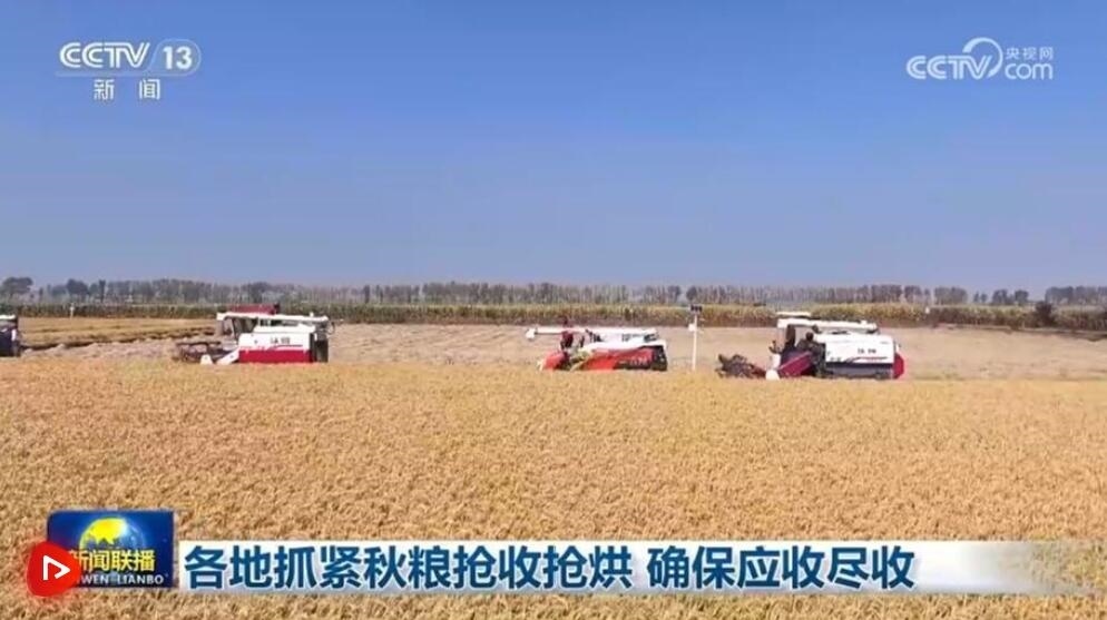 持續(xù)陰雨給華北、黃淮等地秋收帶來影響,各地千方百計做好搶收搶烘工作。山西秋糧收獲近五成,在太原清徐縣,當?shù)亟M織300多臺水泵,進行不間斷排水,隨著水位下降,搶收加緊進行。山東累計調(diào)配玉米收獲機13.55萬臺,其中履帶式收獲機超萬臺,搶收玉米約3570萬畝。河北利用天氣轉(zhuǎn)晴的窗口期,抓緊秋糧搶收搶曬。江蘇調(diào)配3.5萬臺固定式烘干機、258臺移動式烘干機投入糧食搶烘。安徽秋糧收獲已過七成,農(nóng)業(yè)部門發(fā)布了753支農(nóng)機應(yīng)急作業(yè)隊和2114個烘干點信息,方便群眾聯(lián)系。同時,全省21萬臺聯(lián)合收割機全部投入作業(yè),2萬套烘干設(shè)施24小時開機烘干糧食,最大限度保障秋收。