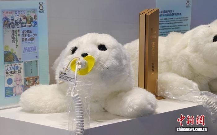 圖為北京千展新世代智能機器人科技有限公司展臺上展出的認知功能維護機器人。(中新網(wǎng)記者韓輝 攝)