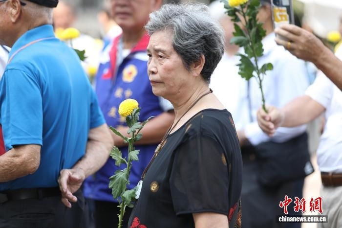 2025年9月3日是抗戰(zhàn)勝利紀(jì)念日,臺灣民間團體當(dāng)天在臺北市中山堂廣場舉行抗戰(zhàn)勝利80周年紀(jì)念活動,緬懷先賢的犧牲奉獻(xiàn),呼吁正視歷史、珍愛和平。圖為臺灣抗日志士羅福星的孫女羅秋昭出席活動,向抗戰(zhàn)中犧牲的軍民同胞敬獻(xiàn)鮮花。 中新社記者 朱賀 攝