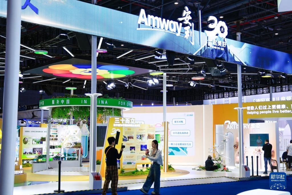 這是11月4日拍攝的第八屆進博會醫(yī)療器械及醫(yī)藥保健展區(qū)一景。