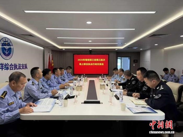 11月12日,粵桂瓊三省(區(qū))第三次海上聯(lián)合執(zhí)法行動交流會在中國漁政44002船召開。廣東省海洋綜合執(zhí)法總隊 供圖