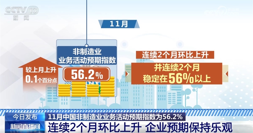 11月中國非制造業(yè)商務活動指數(shù)為49.5%:金融活動和新動能表現(xiàn)良好 企業(yè)預期樂觀