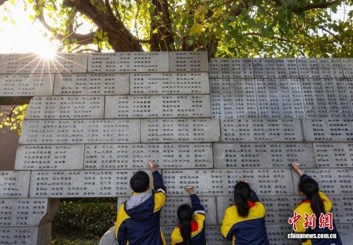 中新社南京11月30日電 (記者 朱曉穎)南京大屠殺死難者家庭祭告活動(dòng)30日在侵華日軍南京大屠殺遇難同胞紀(jì)念館舉行。南京大屠殺幸存者、南京大屠殺歷史記憶傳承人、南京大屠殺遇難同胞遺屬、青少年及志愿者代表等,聚集在南京大屠殺遇難者名單墻(又稱“哭墻”)前,一同祭奠在大屠殺中慘遭殺害的無(wú)辜同胞。