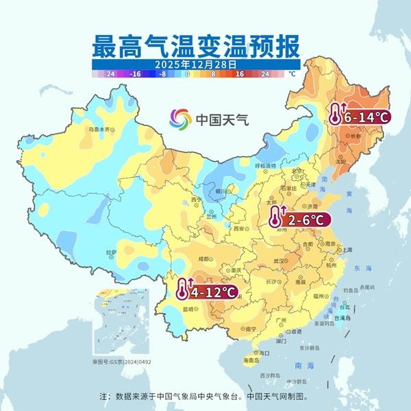 這場(chǎng)年尾超級(jí)大回暖正在席卷我國大部地區(qū),并將持續(xù)至29日。明后天,回暖幅度和范圍進(jìn)一步升級(jí),北方地區(qū)明天氣溫普遍達(dá)到高點(diǎn),南方地區(qū)將在后天(29日)前后迎來過程氣溫高點(diǎn)。其中明天,最高氣溫0℃線將同期少見地挺進(jìn)東北,并北抬至吉林中部,黃淮南部到江南普遍在15℃以上,華南也將重返20℃以上,短袖有了重新出場(chǎng)的機(jī)會(huì)。