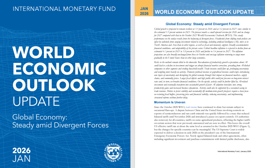 1月19日,國際貨幣基金組織(IMF)發(fā)布了2026年第一期《世界經(jīng)濟(jì)展望》報(bào)告(以下簡稱報(bào)告)。