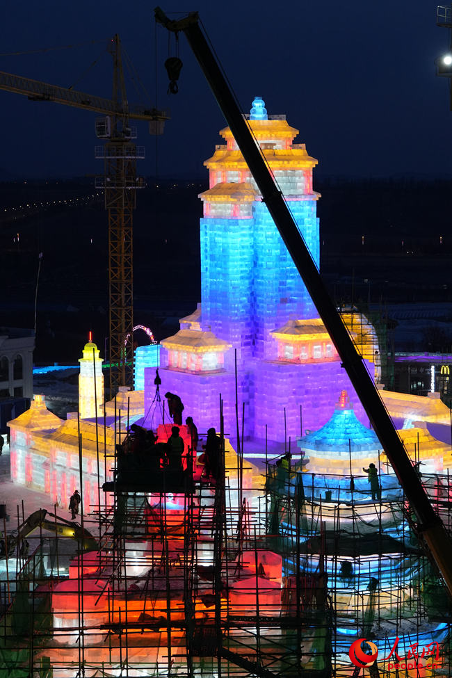 冰為磚、水為泥、燈為飾,打基礎(chǔ)、做鋼架、砌冰墻……最忙時(shí),曲超和5500余名工人夜以繼日,在攝氏零下的氣溫中“玩冰嬉雪”,睫毛上全是凝結(jié)的霜花?!氨┦嵌虝旱乃囆g(shù),一旦進(jìn)入冰雪施工季,都得緊抓時(shí)間,盡量把施工時(shí)間壓縮到最短,這樣留給游客欣賞的時(shí)間就會(huì)更長(zhǎng)?!鼻f。