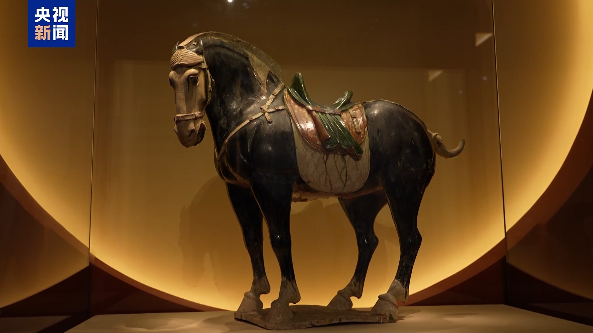 國家博物館館員、策展人 許文珺:它一改漢代時(shí)期古拙平穩(wěn)的風(fēng)格,展現(xiàn)出了唐馬的風(fēng)范。它是唐三彩中難得的一件黑釉精品,也是我們國博的鎮(zhèn)館之寶之一。