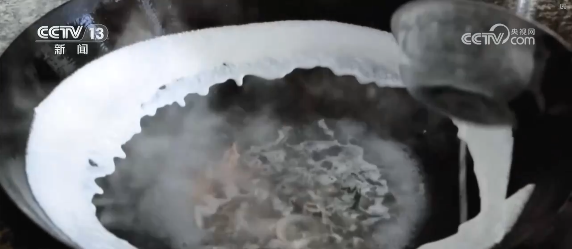 鍋邊的制作并不復(fù)雜,以高湯為底,加入蝦米、紫菜、干貝、香菇、蟶干、魚干等食材共同熬煮。之所以叫“鍋邊”,是因?yàn)橹谱鲿r,要把大米磨成的米漿沿著燒熱的鍋的邊緣順時針澆上一圈。而作為鍋邊的“靈魂”,米漿的制作可有大講究。
