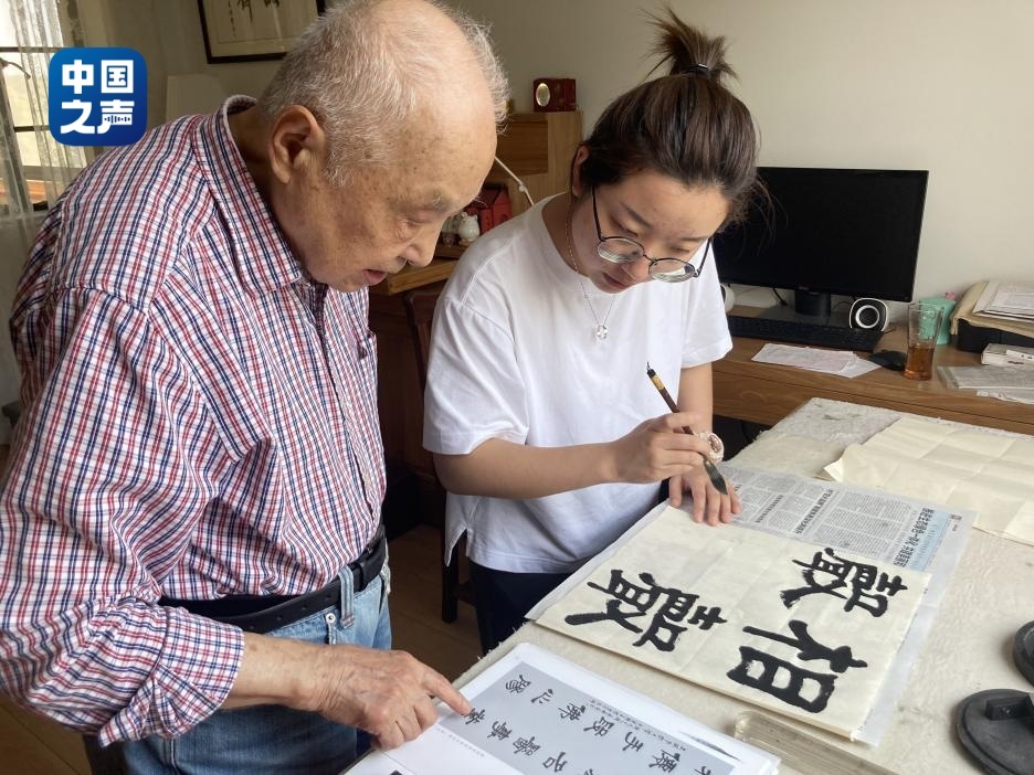 陳真與周爺爺一起練習(xí)書法