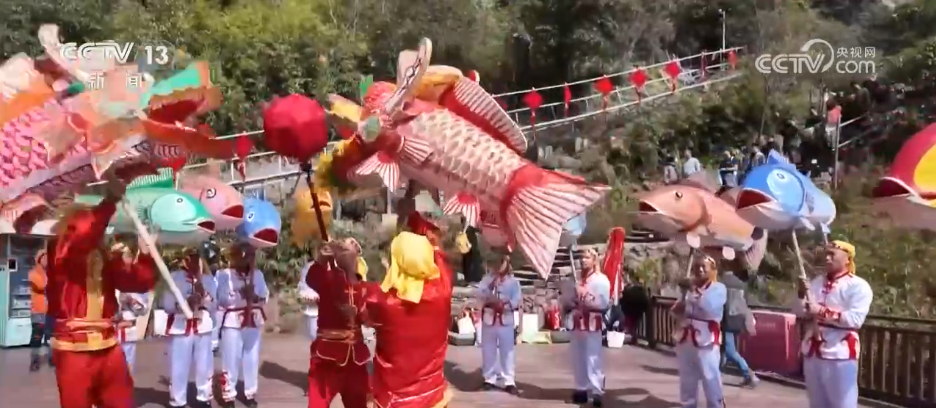 記者身后的九鯉湖景區(qū),湖光山色、層巒疊翠,展現(xiàn)出南方山岳特有的靈秀。景區(qū)里最熱門(mén)的打卡點(diǎn)之一,叫做“一線天”。這里最窄處不到30厘米,一次只能容一人貼壁通過(guò),游客需要側(cè)身慢慢穿行,在狹窄石縫間體驗(yàn)攀登的樂(lè)趣。記者身旁正在巡游的就是當(dāng)?shù)氐姆沁z——店下魚(yú)燈。大家看,一盞盞彩繪魚(yú)燈隨著隊(duì)伍前進(jìn)上下擺動(dòng),像魚(yú)兒在水里游,特別靈動(dòng)。在過(guò)去,漁民會(huì)用魚(yú)燈祈愿出海平安、豐衣足食。過(guò)年的時(shí)候看魚(yú)燈,也寓意“年年有余、風(fēng)調(diào)雨順”。