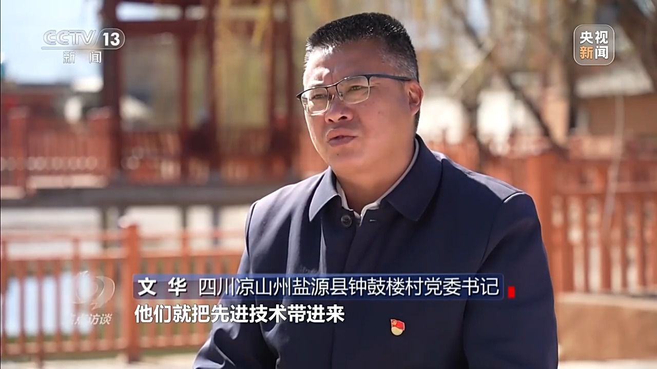 四川涼山州鹽源縣鐘鼓樓村黨委書記 文華:他們把先進技術帶進來,把老百姓組織培訓,從修枝、打藥到最后的采摘都教。