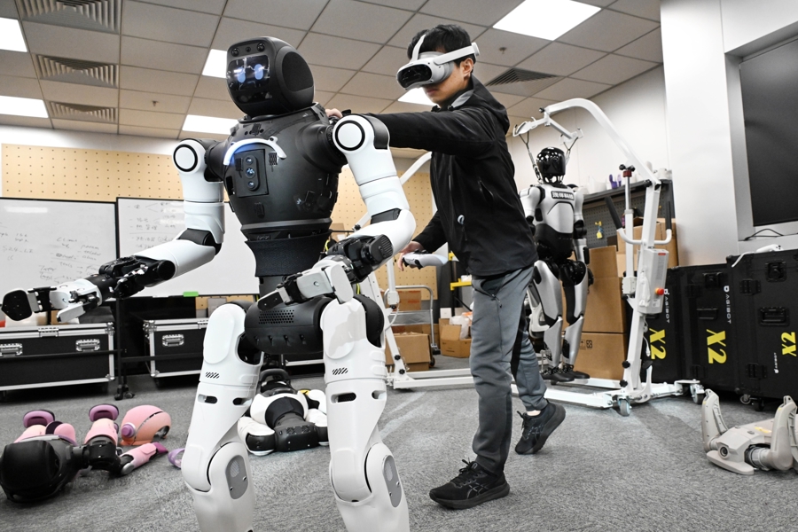 圖為由上海交通大學(xué)、上海人工智能研究院孵化的具身智能創(chuàng)業(yè)企業(yè),在豫園燈會(huì)中心廣場(chǎng)精心打造了一個(gè)未來(lái)感十足的智能互動(dòng)區(qū)。文匯報(bào)記者袁婧攝