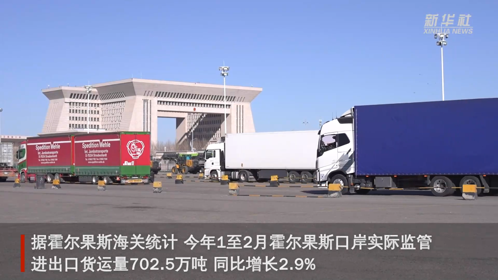 在霍爾果斯口岸,目前每天有上千輛滿載新鮮果蔬、日用百貨的廂式貨車及商品車從這里出境,運(yùn)往哈薩克斯坦、烏茲別克斯坦等共建“一帶一路”國家。據(jù)霍爾果斯海關(guān)統(tǒng)計,今年1至2月霍爾果斯口岸實際監(jiān)管進(jìn)出口貨運(yùn)量702.5萬噸,同比增長2.9%。