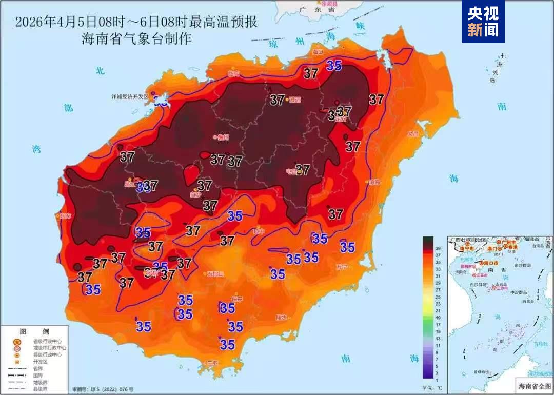 海南省氣象局4月5日下午繼續(xù)發(fā)布高溫四級預(yù)警:預(yù)計4月6日白天,???、澄邁、臨高、定安、屯昌、儋州、白沙、昌江和東方等9個市縣的大部分鄉(xiāng)鎮(zhèn)將出現(xiàn)37℃以上的高溫天氣,請有關(guān)單位做好防暑降溫、森林防滅火等相關(guān)工作。