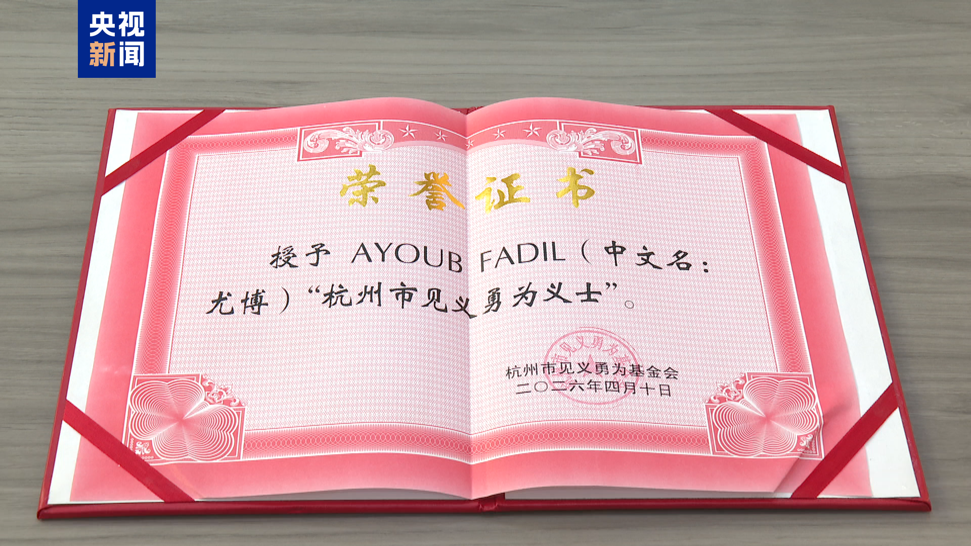杭州市文明辦授予尤博“杭州好人”稱號。杭州市見義勇為基金會為其頒發(fā)見義勇為獎勵金5000元以及見義勇為證書,希望通過即時即獎的方式,讓勇者有榮,同時也傳遞“善良無國界”的精神。據悉,這是第一位獲評“杭州好人”的外籍友人。