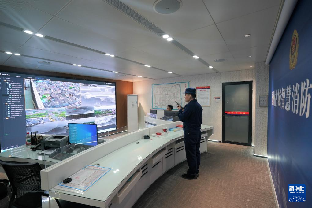 在揚(yáng)州市廣陵區(qū)東關(guān)街政府專職消防隊(duì)指揮中心,“協(xié)同治理合伙人”張華峰依托“古城智慧消防監(jiān)管系統(tǒng)”開(kāi)展古城街區(qū)消防實(shí)況監(jiān)測(cè)和現(xiàn)場(chǎng)指揮(4月16日攝)。