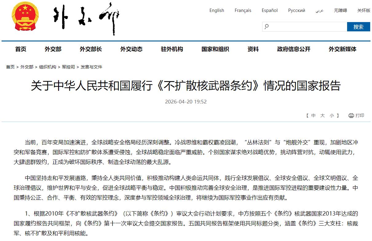 關(guān)于中華人民共和國(guó)履行《不擴(kuò)散核武器條約》情況的國(guó)家報(bào)告