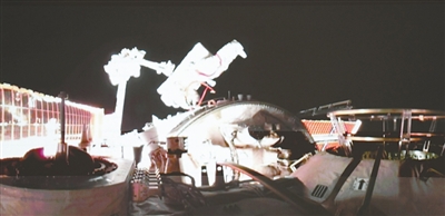 在北京航天飛行控制中心屏幕上拍攝的王杰出艙畫(huà)面。新華社記者 厲彥辰攝