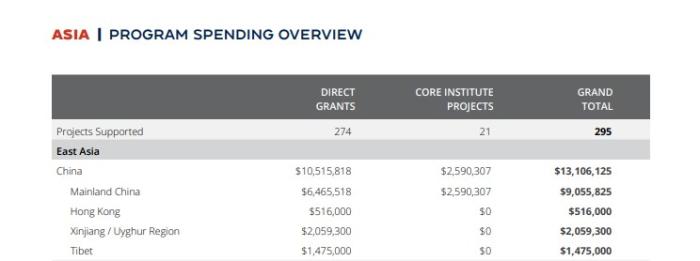 NED在亞洲的投入總額超過5300萬美元。其中,針對中國的相關(guān)項目金額達(dá)到1300萬美元,位居全球第一。砸這么多錢,在中國干了什么?