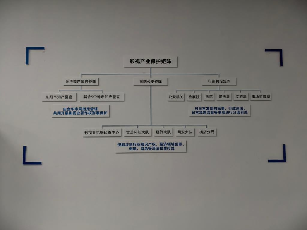 2026年4月17日,浙江省金華市橫店影視業(yè)法治中心展示的影視產(chǎn)業(yè)保護矩陣。 新華社記者李明輝 攝