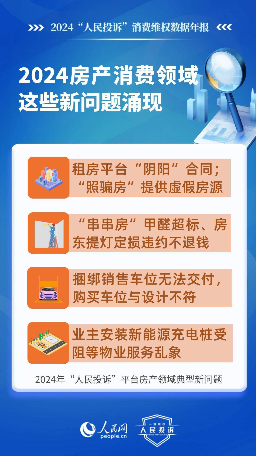 新問題體現(xiàn)在:租房平臺“陰陽”合同、提供虛假房源、甲醛超標(biāo)不退款、違約不退定金/押金等;捆綁銷售車位無法交付,購買車位與設(shè)計不符,人防車位/不合格機械車位當(dāng)普通車位賣,無法正常使用,業(yè)主安裝充電樁受阻等。