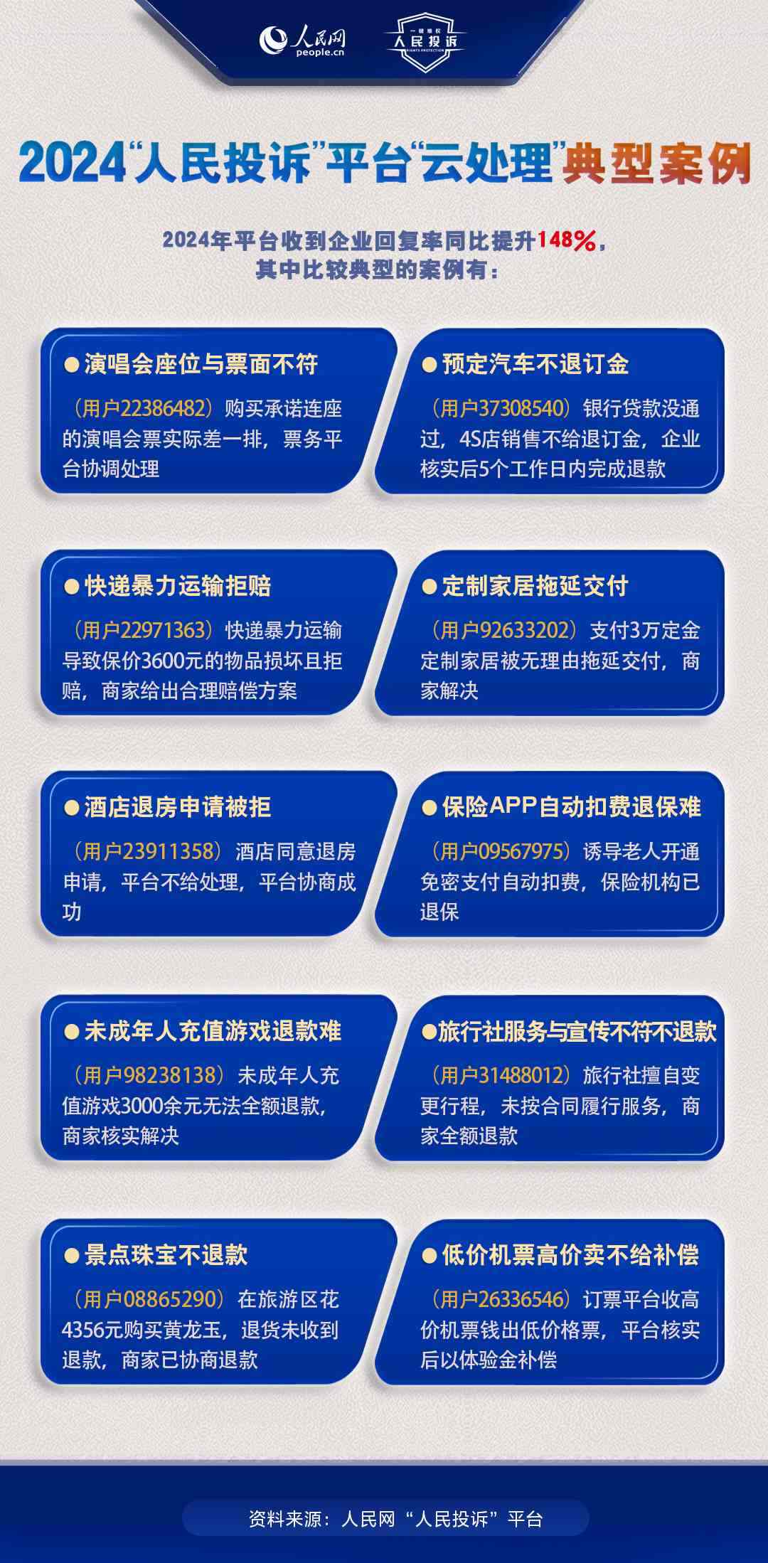 2024年,旅游消費持續(xù)火爆,以舊換新“換”出消費新活力,直播電商“品質(zhì)化”轉(zhuǎn)型,新能源汽車購銷兩旺……在消費市場熱力持續(xù)提升的背景下,旅游產(chǎn)品退訂難,電商促銷虛假價保,直播間營銷違規(guī),車險車貸服務(wù)欺詐,AI培訓(xùn)貨不對板等消費侵權(quán)問題引發(fā)廣泛關(guān)注。“人民投訴”發(fā)布年報帶您回顧這一年來,平臺消費維權(quán)熱點和入駐企業(yè)積極處理糾紛的舉措。